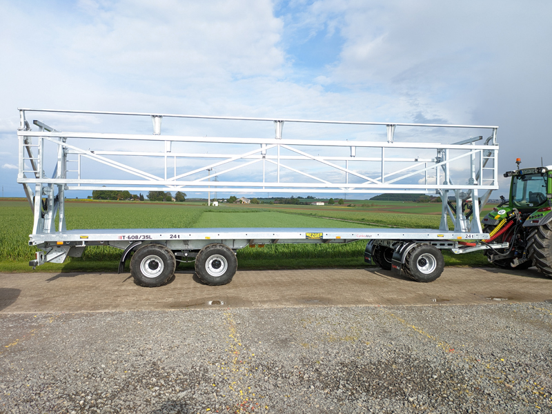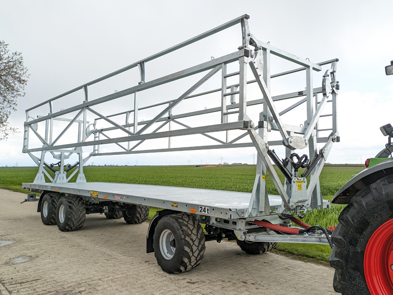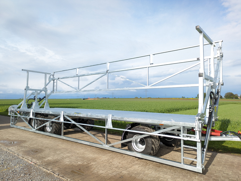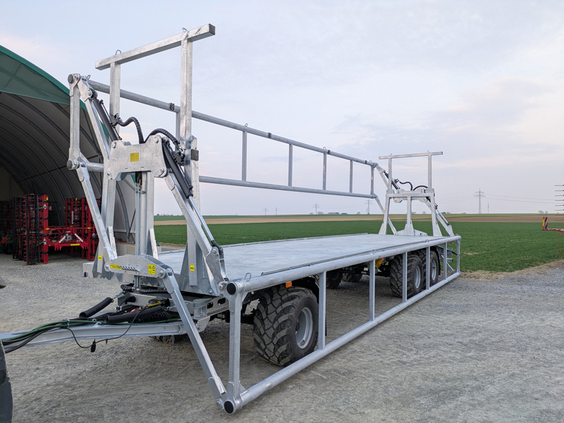 Damit können wir eine Brückenlänge von bis zu 10.030 mm (innen) anbieten, wodurch Platz für 32 Rundballen mit einem Durchmesser von 1.250 mm oder 32 Quaderballen mit 2.500 mm Länge vorhanden ist.