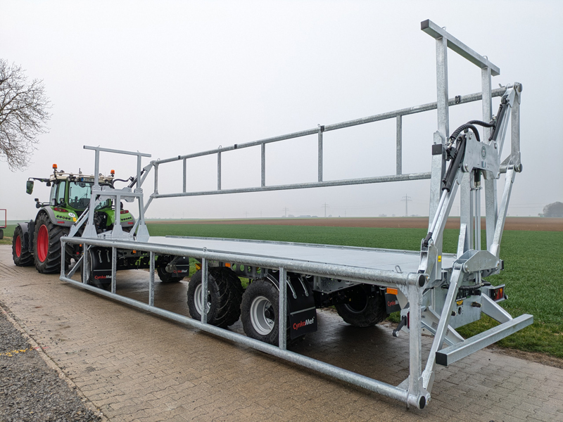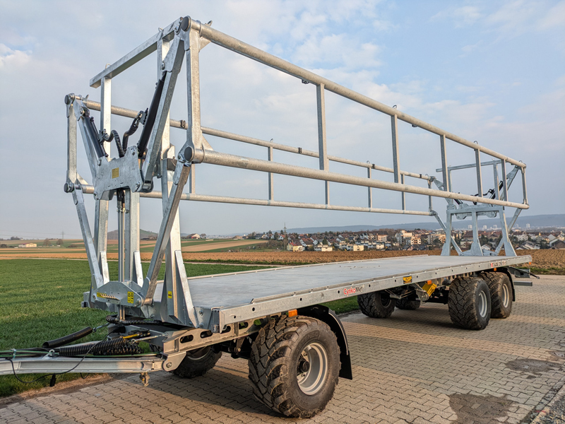 Der CynkoMet Ballenwagen (Ballensammelwagen) ist sehr vielseitig einsetzbar. Vom klassischen Transport von Heu-, Stroh- oder Silageballen, über die Beförderung von Obst- oder Kartoffelkisten bis hin zu Langholz-/Baustoff-Transport oder dem Einsatz in der Industrie ist alles möglich. Der Plattformwagen hat eine Innenbreite von 2.430 mm (Palettenbreite). Dadurch ist das Einsatzspektrum beinahe unbegrenzt.