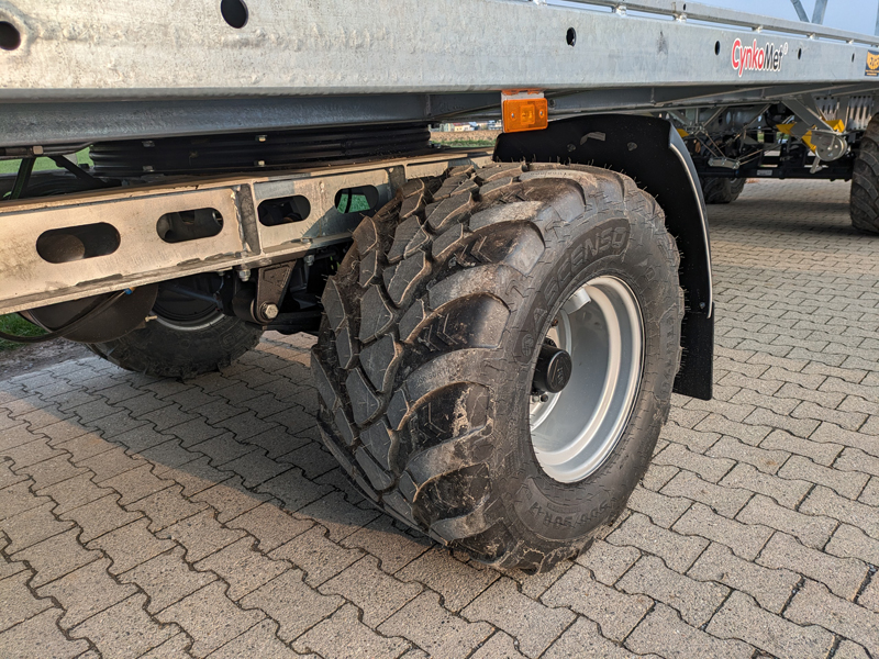 Serienmäßig wird der Ballenwagen mit der bewährten Ackerwagen-Bereifung 500/50 R17 geliefert (Diagonalreifen). Gegen Aufpreis sind Radialreifen unterschiedlicher Marken lieferbar. Diese sorgen für eine größere Laufruhe bei längeren Transporten auf der Straße.